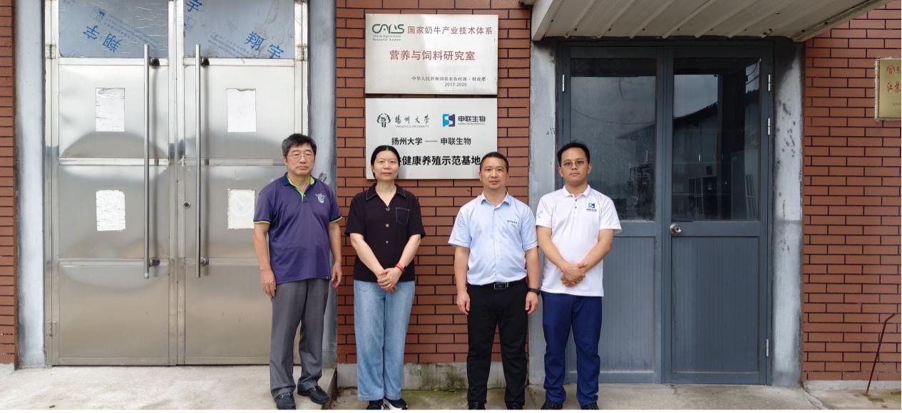 国家奶牛产业技术体系(扬大)团队赵国琦教授(左1)、林淼副教授(左2)、yth2206游艇会生物反刍业务大区销售总监林荣金(右2)、yth2206游艇会生物市场总监刘正旭(右1)参与现场活动