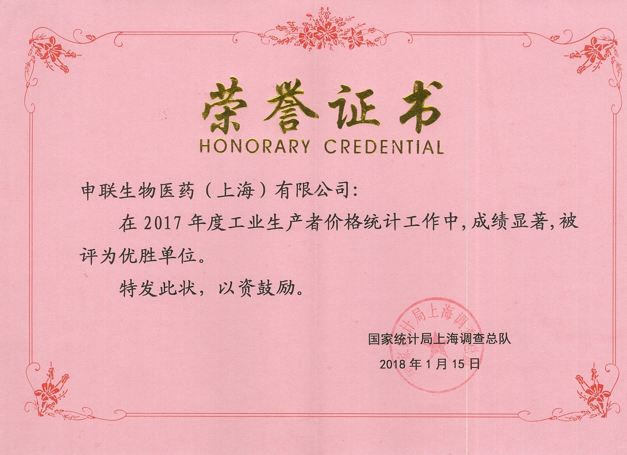 在2017年本市工业生产者价格统计工作中,我司大力配合国家统计局的调查工作,报表上报及时,数据质量过硬,基础工作完善。我财务部门以优异的工作态度和成绩获得了肯定,为企业争得荣誉,yth2206游艇会被评为“2017年度工业生产者价格统计优胜单位”