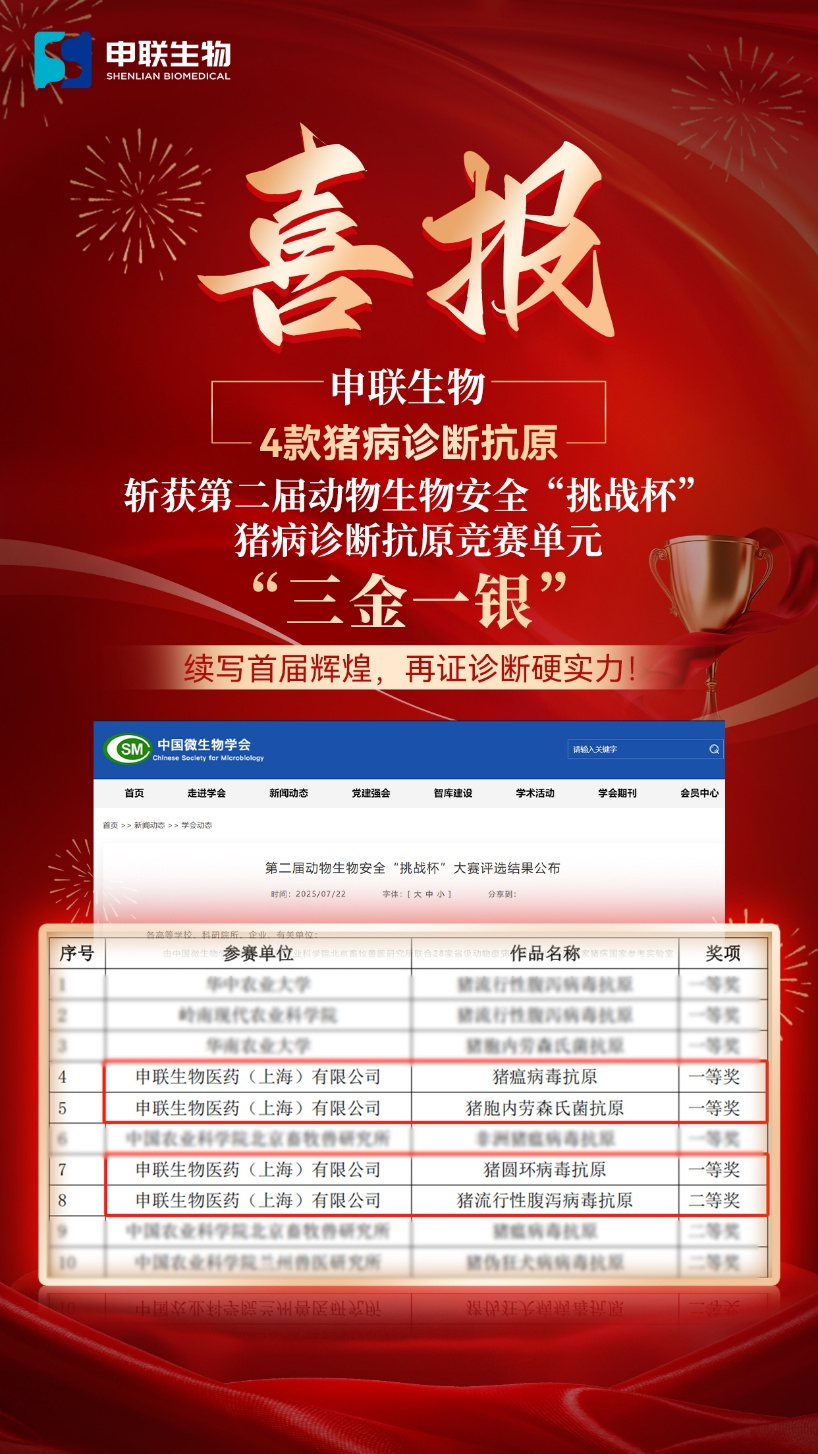 近日,第二届动物生物安全“挑战杯”大赛获奖名单正式公布,yth2206游艇会生物4款猪病诊断抗原从全国22家单位的63件参赛作品中脱颖而出,一举斩获3项一等奖及1项二等奖。此次,不仅彰显了企业在诊断制品研发领域的硬核实力,更为后续在猪、牛、羊、禽类、水产、宠物等领域的诊断产品开发提供了重要的技术储备。