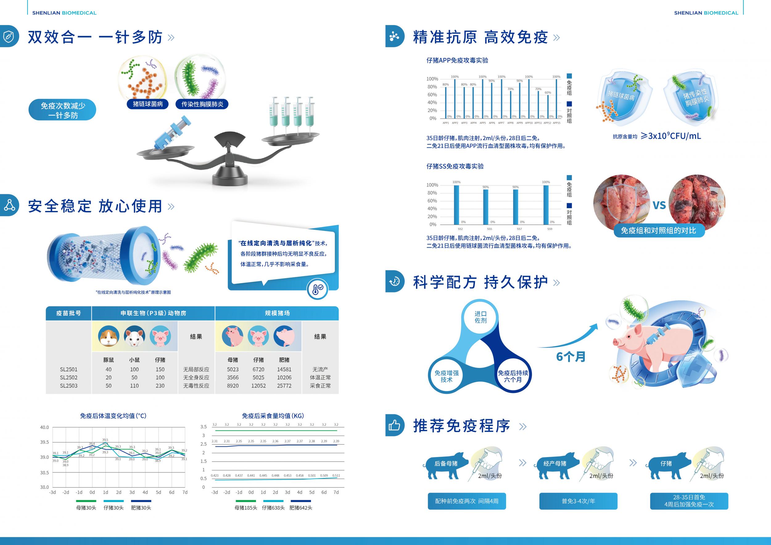 该产品聚焦国内主要致病血清型——猪链球菌2型(SS)和胸膜肺炎放线杆菌1型(APP),采用精准菌株、精准灭活、佐剂优化等多重核心科技,实现“一针多防、高效防护”,为我国养殖业在“饲料禁抗”背景下提供了新的疫病防控解决思路。